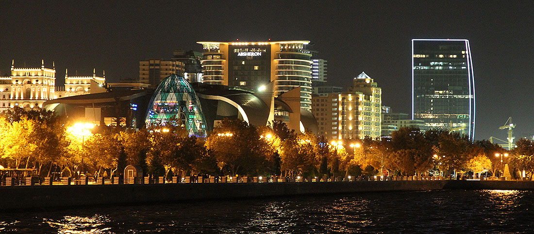 Bulvar - the boulevard that runs along the Caspian Sea - at night.