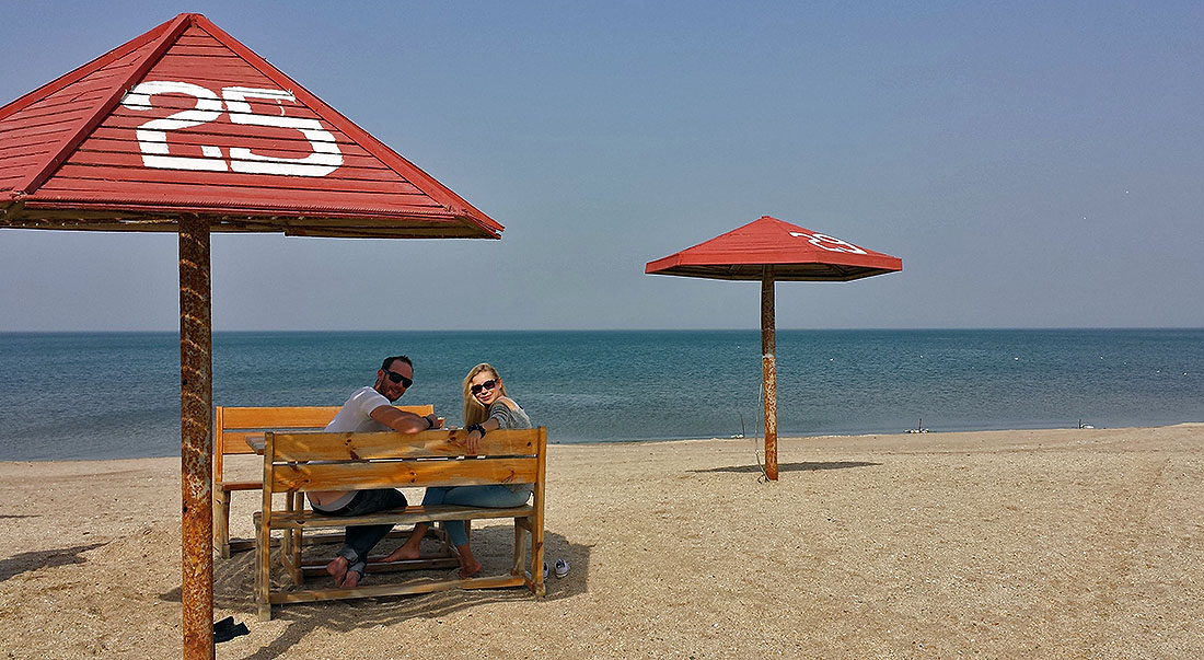 Breakfast by the Caspian Sea - the world's largest lake.