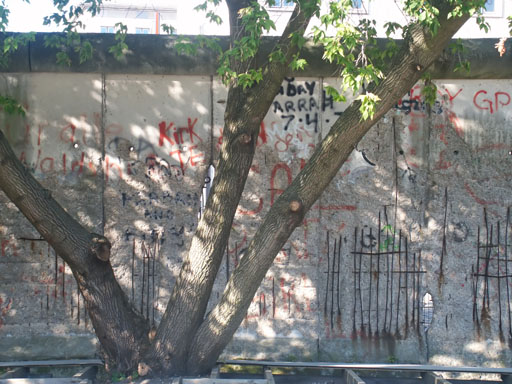 A section of the Berlin Wall, built in the 1960s to forcibly stop the drain of skilled workers from the Soviet-controlled East to West Berlin (controlled by the Allies).