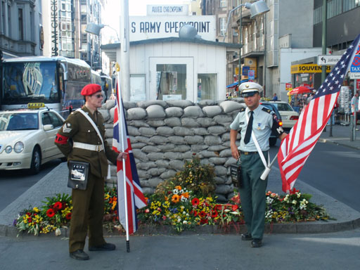 The replica guardhouse at Checkpoint Charlie, complete with fake soldiers.