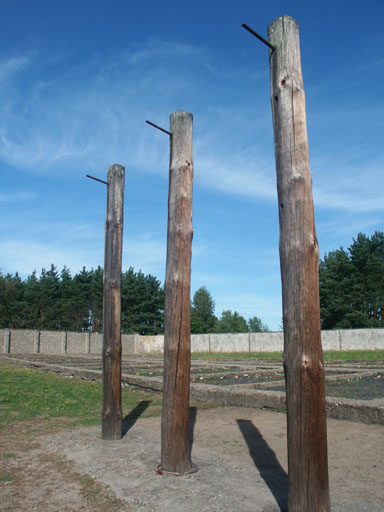 The 'hanging poles' - inmates were strung up to these by their wrists. Consequently their shoulders would dislocate under the strain, and their heads would hang limp. Many were left to die like this.