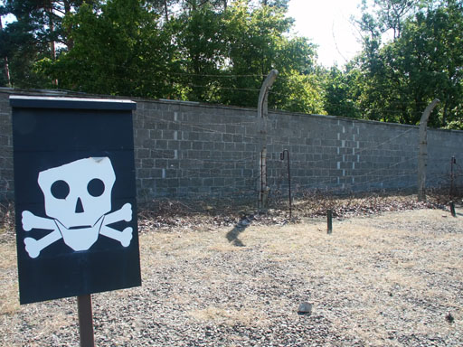 This barbed-wire fence, bordering the Sachsenhausen concentration camp, used to be electrifed. Prisoners were known to hurl themselves at the fence to end it all.