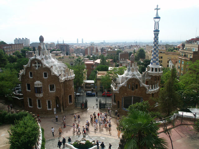 Overlooking the entrance to Parc Guell - a hill with great views of the city, upon which Gaudí turned his hand to landscaping, with some amazing results.