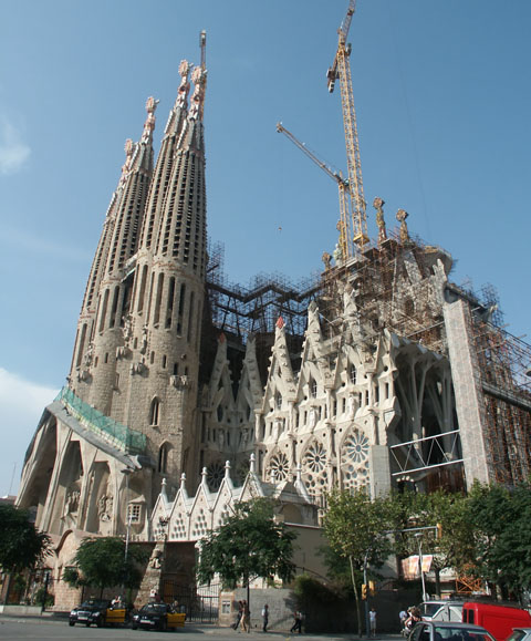 La Sagrada Familia. This is the dog's bollocks of Barcelona landmarks. Begun by Gaudi in 1883, it's currently made up of 8 towers (all over 100m), with another 10 yet to be constructed. (Those long Spanish siesta breaks during the day are really holding up the progress of this masterpiece!) The highest tower will be 170m tall, representing Jesus, whilst the others symbolise the Mother of God, 12 apostles and 4 evangelists. Also worth noting it's it's rather stubborn way of refusing to fit into any photographs I took.