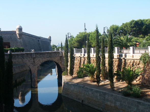 One of the many bridges over the waterway that lines the orginal city walls of Palma's old town.