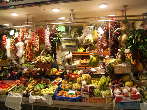 The food market here is a little more organised than that in Barcelona. This is a typical fruit-and-veg stall inside the market. I'm always fascinated with these markets in Spain. So many colours, smells, people.