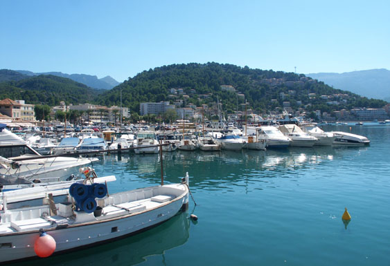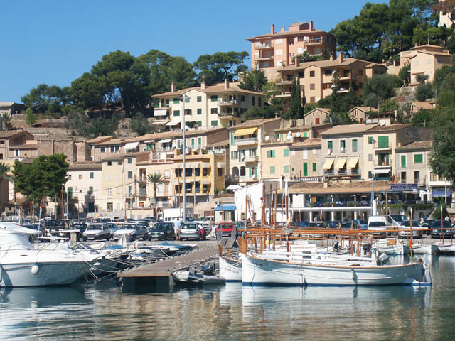 The other day we took an over-priced scenic train trip on a rickety old electric train (packed to the hilt with tourists) through a large mountain range and to the small port of Soller (pronounced "Soyer") - one of those quaint little Mediterranean fishing villages you see in magazines. Lining the tracks along the way was one olive grove after another - the hardy trees poking their way out of the dry, rocky soil that makes up most of this island's interior.