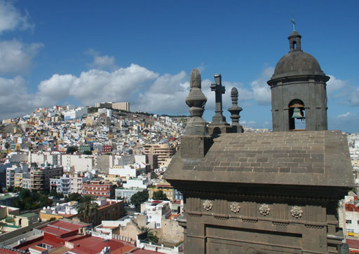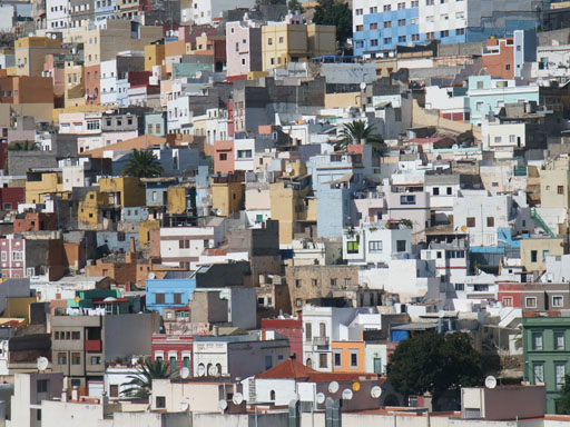 A colourful mass of tightly-packed buildings sprouts from many of the hilltops surrounding Las Palmas (pop. 356,000).