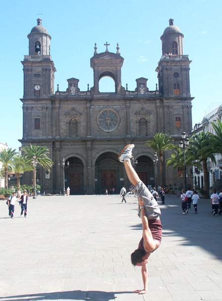The usual one-hander, in front of the Santa Ana Cathedral (begun in the 16th century, completed in the 19th).
