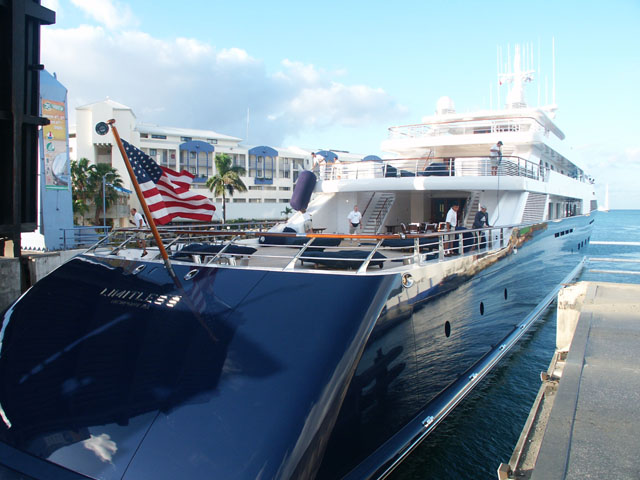 Limitless, the 318ft behemoth owned by the CEO of the Gap, Limited, and Victoria's Secret lines. This was a special 7:30am bridge opening (I can't believe I made it up that early just to photograph this for you) for Limitless to leave the lagoon, on its way to the Miami boatshow. A while back Limitless helped to fund the widening of the drawbridge so that it could fit through the damn thing!