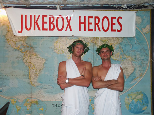We came suitably-attired for the toga party gig...