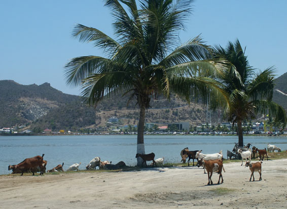 Nope, it's not outer Mongolia - these wild goats are roaming the town's main (clogged) street.