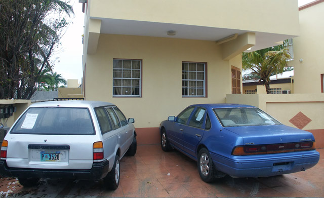 The two headache-causing vehicles, replete with For Sale signs in the windows, parked in front of my old apartment complex.