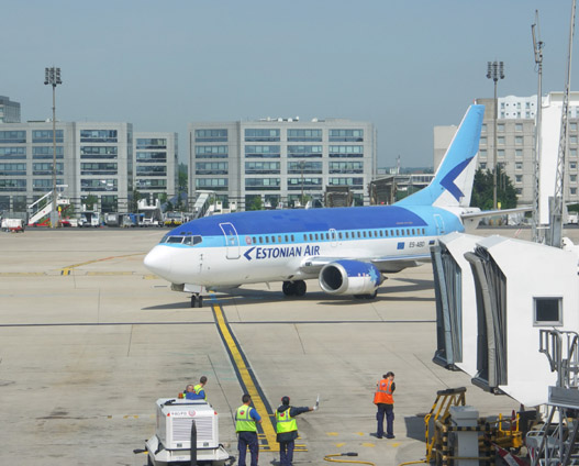 After a 3-hour flight (starting to get reeeally tired now) we landed in Tallinn, Estonia. The blast of 6-degree air (43F) from the open plane door worked to remove my sleepiness! Boy, this place is chilly. It's supposed to be warming up this month, and they're expecting a great summer, but the proof is in the pudding, as my mother would say.