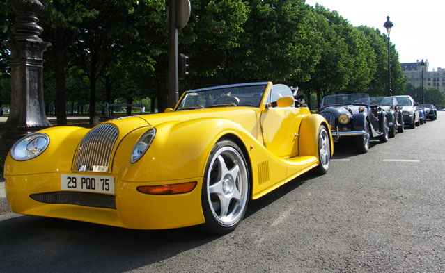 The new British-made V8 MG Aero 8 that caught my eye, lined up with other older versions on some club outing.