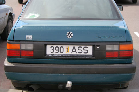 A rather unfortunate licence plate. I once saw an 'ass' plate on a brand new Mercedes. I'd ask for a refund.