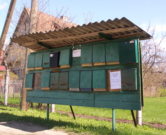 The mailboxes here don't sit at the end of your driveway, but rather, in a big group at the end of the road. Sucks if you live down the far end!