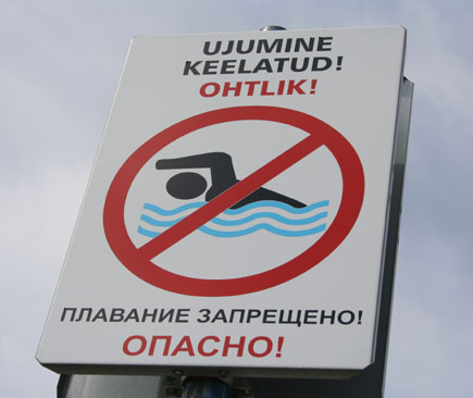 "No swimming". "Danger!" (If you dipped your toe into the water here, you'd understand why)