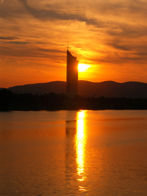 Sunset over the Danube - nature provided us with a spectacular show for dinner on our final night in Vienna.