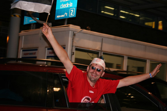 A happy drunken Estonian reveller, taken while we waited in line to drive our car onto the high-speed ferry back to Estonia.