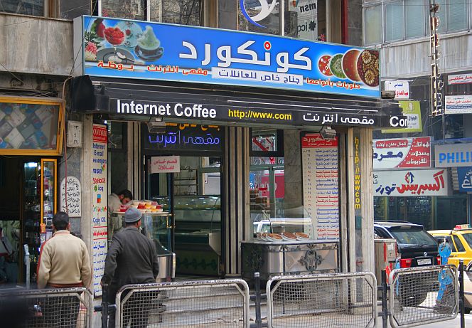An Iraqi man (who snores like a jumbo jet, might I add) shared his breakfast with me this morning, and I've been checking out the city's sights with my new friend Karim, from Tunisia (north Africa). He's a chain-smoking, sometimes-mumbling-to-himself-in-Arabic older guy, but is local here so is giving me the low-down, and is good for a laugh. Last night we ended up at a men-only restaurant (ladies ARE allowed, they just never go there), where I must have passively smoked my way through two packs of cigarettes (the smoke hung thick in the air and I had to go and open a window and sit by it). We had some Syrian beer (which won't win any prizes) and a nargile (water pipe) and then finally, inevitably, some Syrian raki. The bill came to about 6 bucks.