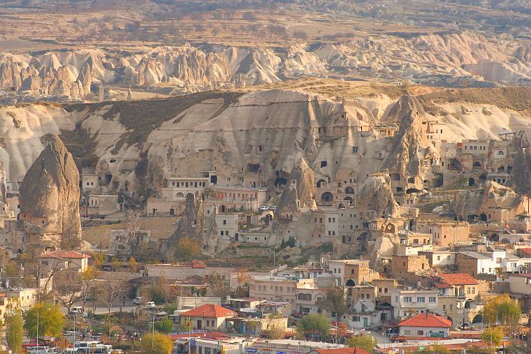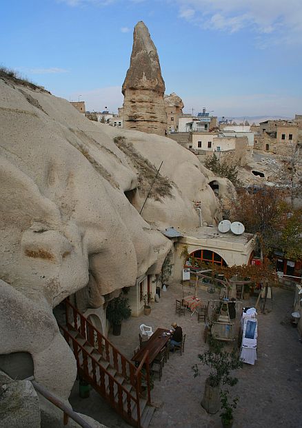 I was dropped in the middle of Göreme at 4:50am, and couldn't quite believe what I saw. I stood there all alone in the dark and looked around in amazement at the strange cone-shaped rock formations (some with windows carved out) sticking out from amongst the shops and houses. It felt like I'd landed in a Dr. Seuss book. I picked up my stuff and strolled around the silent village (until the Imam started wailing through the speakers, waking up all the dogs in the process) and just gaped at the various cave dwellings. Every second one seemed to be a backpacker hostel! At 6am I found the ShoeString Cave Pension, and was kindly led into a cave dormitory to grab some much-needed shut-eye (but not before bumping into Brendan, the Aussie guy I'd hung out with Istanbul... small world!).