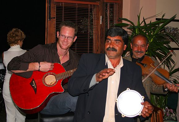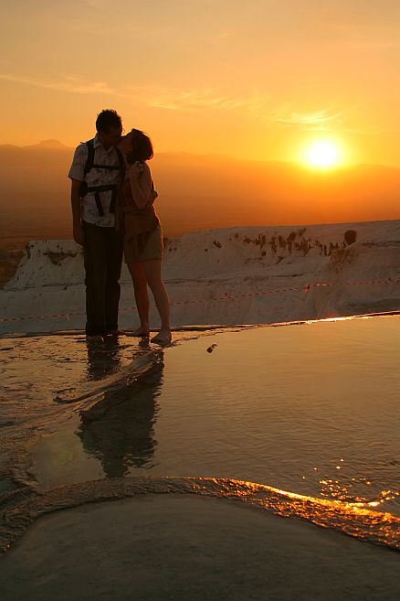The Turkish wedding party was fantastic. I started the night as a foreign stranger, and ended as a friend-come-musician extraordinaire! Boy those Turks can party when the raki and red wine gets flowing! As expected, the buffet was great, and I tried everything I could (everything that looked edible, anyway). I got talking to a Dutch family who'd lived in Turkey for 7 years, and they invited me out to their farm near Kusadasi the next day, but unfortunately I had to leave. A Turkish musical duo (with a little hand drum and a violin) struck up and played traditional music for some time, until it began to irritate even the Turks there, so I was ushered to the floor with my guitar. Well, we suddenly became a trio, and I had some rather odd backing music to accompany George Michael's 'Faith'... ("well I guess it would be nice, if I could touch your body"...etc). Hilarious, and I couldn't stop grinning from ear-to-ear (or was that the raki?). The crowd dug it so I played on for some time, until later I broke two strings in succession and it was time to stop. I left in the early morning while they were forming a rhumba line and spilling out the door onto the street. But not before negotiating free accommodation for the two nights I spent at the hostel (the restaurant owner also owned the hostel I was staying at). It could've easily been three free nights plus another free dinner had I wanted, but I had already booked a bus and had to push on to Pamukale in the morning.