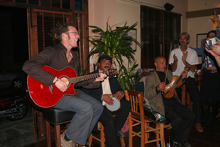 That morning I joined Brendan and four other Aussies (seeing a trend yet?) for a walk through Rose Valley - more mind-boggling rock and cliff formations, looking more Martian than from this planet. We had a late lunch of pide (Turkish pizza) and later I ended up entertaining a bunch of people with my guitar in the grotto-like cave common room at the hostel. I'm really glad I lugged that heavy instrument here with me. Brendan and I checked out a local cave-like bar for a quiet beer, and I had a little tinkle on a Saz (traditional Turkish guitar). Cool sound!