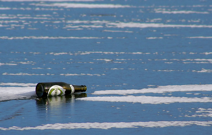 Tuborg on ice. An empty bottle of Tuborg - one of Denmark's most famous beer brands - lies discarded on the frozen surface of Lake Skanderborg.