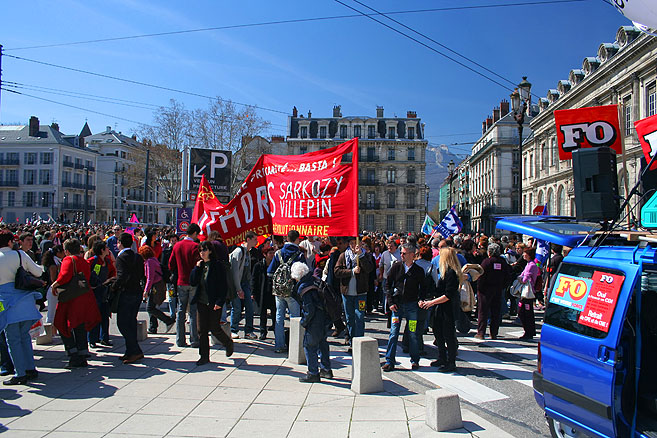 Most of you are probably aware of the protests that have been taking place throughout France recently, over youth employment contracts (the 'CPE'). The sign being held up here has the names of the two biggest culprits - Villepin, France's Prime Minister; and Sarkozy, the Interior Minister.