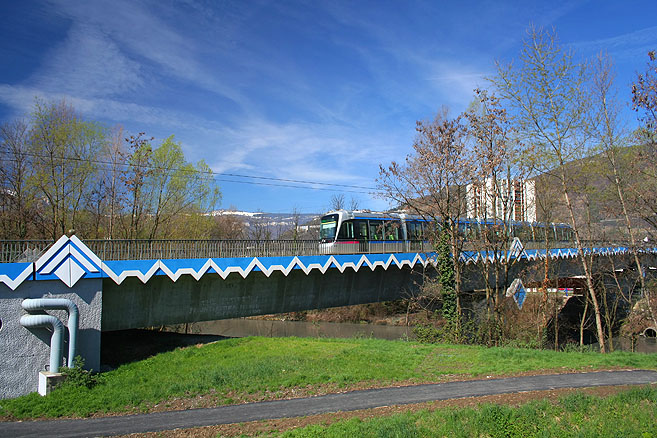 The scene outside my window a hundred times a day - the city's electric trams silently gliding by and across the river.