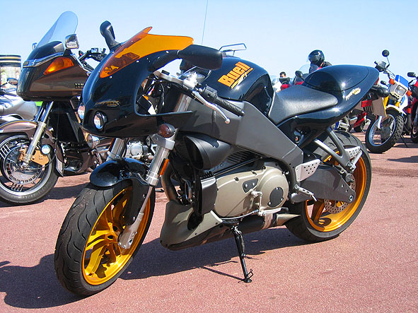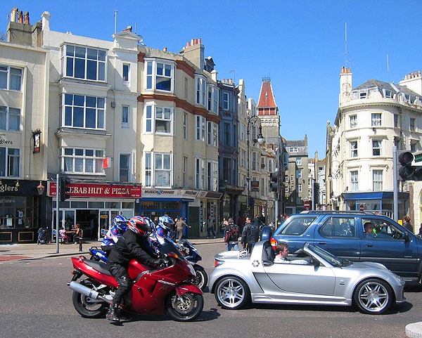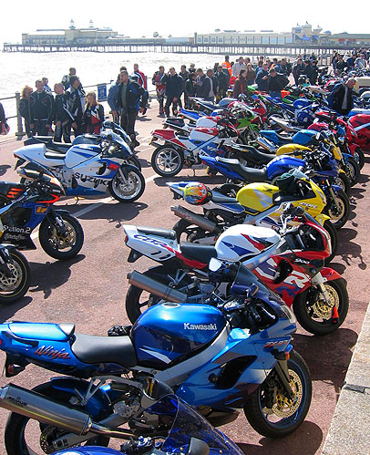 Last weekend I went on the May Day Run with Hayley and Ron. It's an annual motorbike ride from Kent to Hastings, now involving some 20,000 bikes. Ron was on his Fireblade, Hayley on her CBR600F, and I was lucky enough to use a friend's one-month old 2006 Buell XB12R Firebolt. Fun fun! I haven't ridden much since leaving NZ, and it was great to ride such an amazing 1200cc V-twin bike for the day.