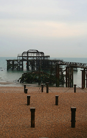 The old West Pier, built in the late 1800s, but now destroyed by nature, and by fire.