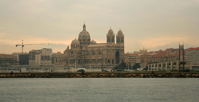 I recently met up with my French friend in Marseille (which is centred around a 26-century old port and is France's oldest city) and journeyed on his boat with him from there to the island of Porquerolles (my second visit there now) and back to Villefranche. This is Cathédrale de la Major - the "major cathedral of Marseille".