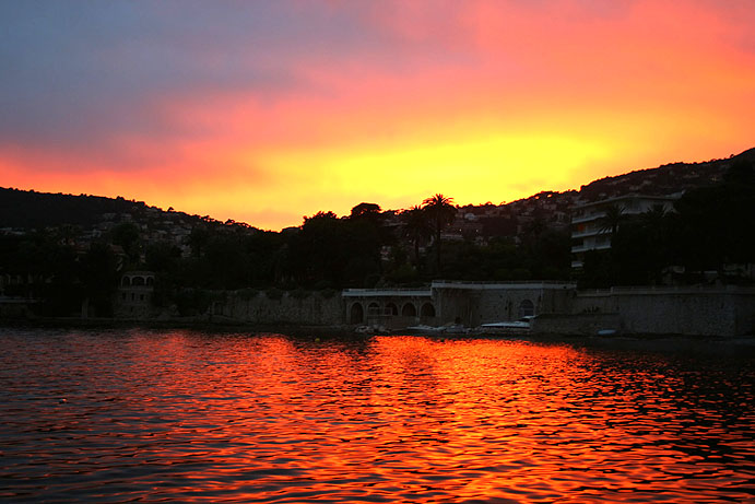Sunset over the bay, outside my bedroom door in Villefranche.