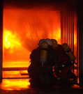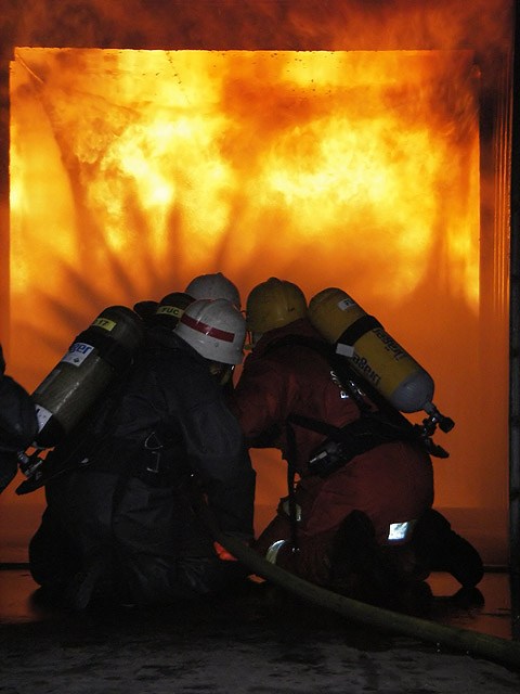 Fighting a 'backdraft' that was roaring along the ceiling towards us (the ignition of super-heated gases and smoke when they receive a sudden rush of oxygen)