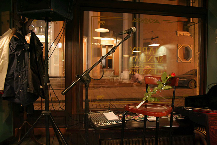 A rose from an admiring fan (Krista's Aunty) sits on my stool in St. Patrick's pub, the night of my final performance, last Friday.