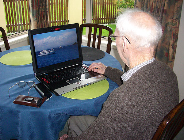 The old and the new. My 94-year-old grandad browses through some of my photos (after a quick lesson on how to use the right arrow key).
