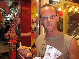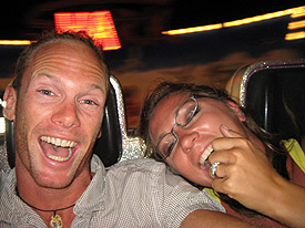 We've visited the funfair next door several times lately, for a night of thrills, spills, and sugar.