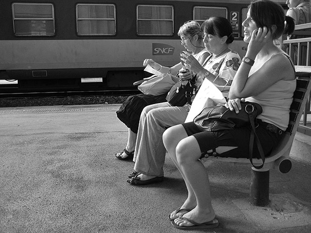 The French trains are fairly unreliable, so a lot of time is spent just waiting on the benches for them to arrive (late).