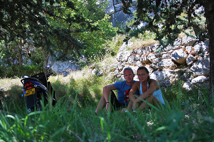 Coursegoules, the hillside village where we stopped for lunch under a tree.