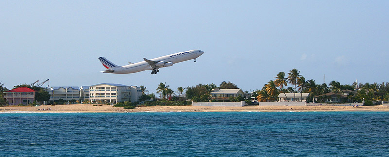 The Air France 747, taking off over Simpson Bay beach. Seen from the boat just after we'd left through the Bridge and heading out to start the crossing...