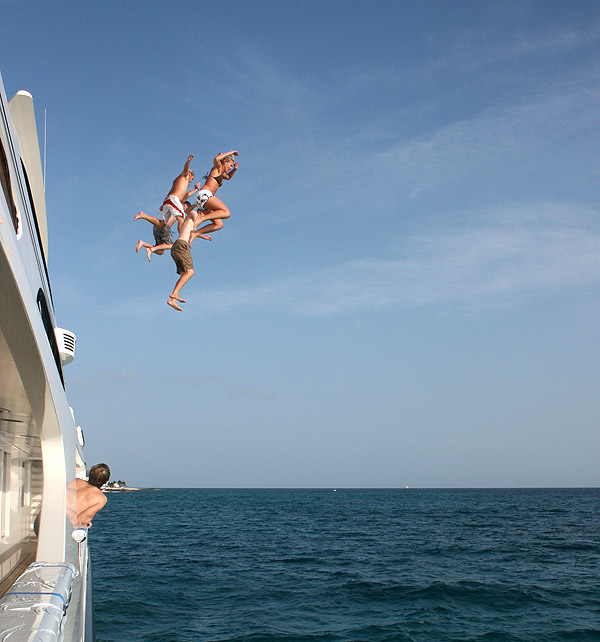 Jumping from the top level of the boat - the last chance we had to experience the warm Caribbean waters.