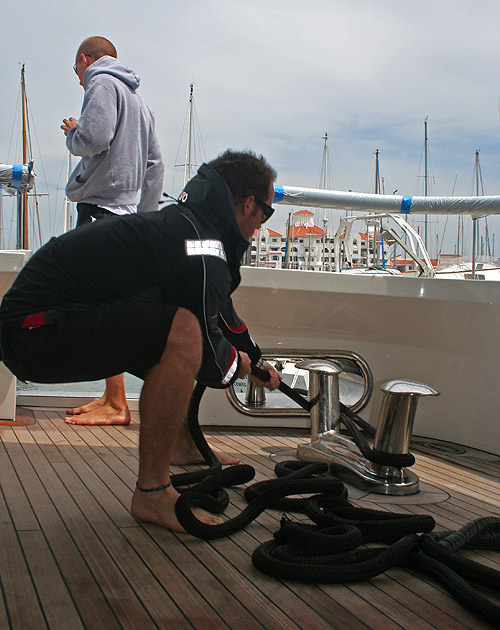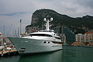 The delivery - 3,300 nautical miles (6,100km) on an approximate 065-degree heading, took 11-and-a-half days, averaging about 14 knots (25 kph). It was fairly uneventful, save for a few rough days of large swells, big bow waves, and some drunken staggering around the boat by us crew as we tried to maintain our balance. Our first stop was in Gibraltar, a tiny British territory (6 square kilometres, and pop. 28,000) on the southern-most tip of the Iberian peninsula (Spain). A little piece of Britain in the Mediterranean. Complete with English football louts. Three days later (more than enough time to spend in Gib) we headed out to sea again, and after two days and 500 miles, arrived at the shipyard in Barcelona.