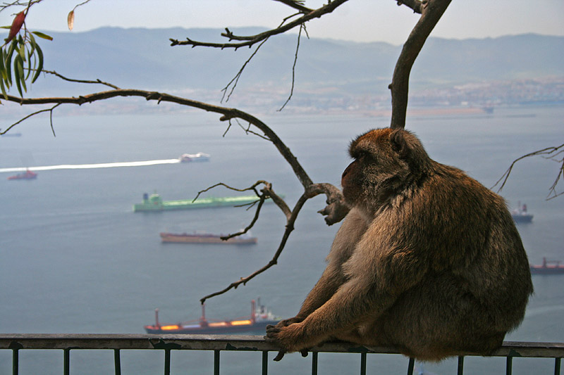 The Rock of Gibraltar is covered with about 230 Barbary Macaques (the only wild monkeys found in Europe), just chilling out, or snatching food, cameras, bags etc from tourists.