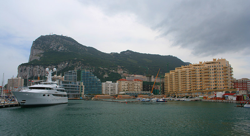 Entering the marina in Gibraltar, with the 'Rock' in the background.