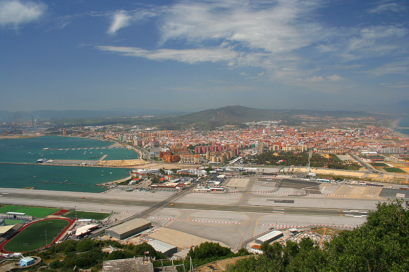 The border between Spain and Gibraltar is formed by the Gib's only airport runway, with barrier arms controlling the flow of traffic across it. Reminds me of the bridge in Simpson Bay.