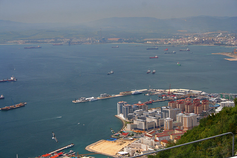 Hundreds of tankers dot the bay of Gibraltar, as seen from atop the Rock.