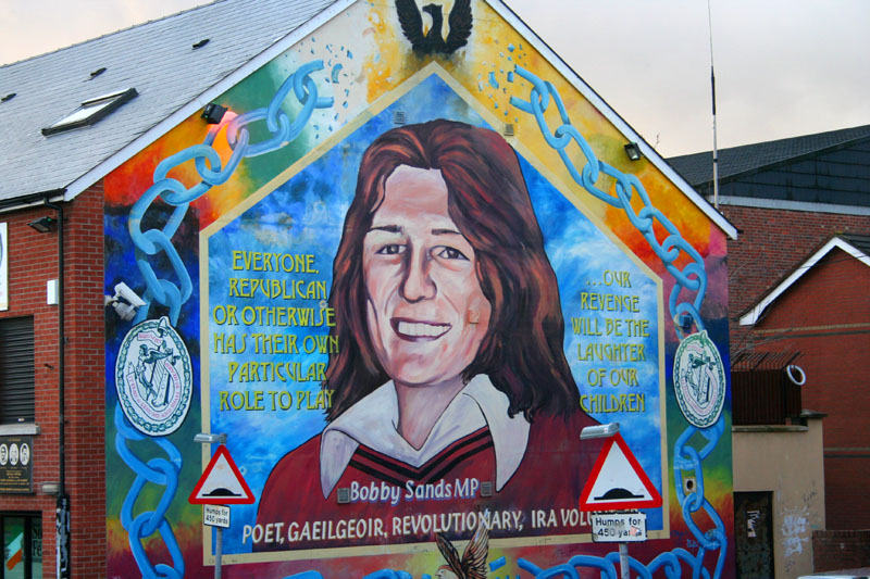 One of many wall murals found around the city. This one is of Bobby Sands, MP and IRA volunteer, who became somewhat of a political martyr when he died in prison from a hunger strike, in 1981. The resulting media coverage provoked a surge in IRA (Irish Repuplic Army) recruitment, and sympathy from around the world.