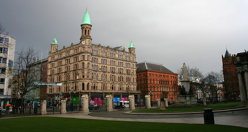 A grandiose-looking square in central Belfast.